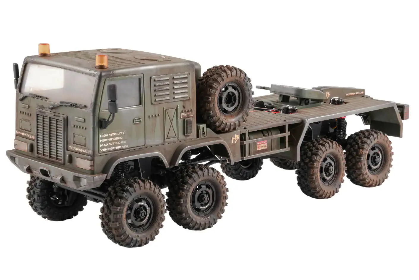 Underneath the weathered and rusted cosmetic updates, you'll find the same features and functions as on the stock CR18P Terranaut, including a two-speed transmission, 8-wheel drive, 8-wheel steering, portal axles, and a servo-winch-powered recovery hook.