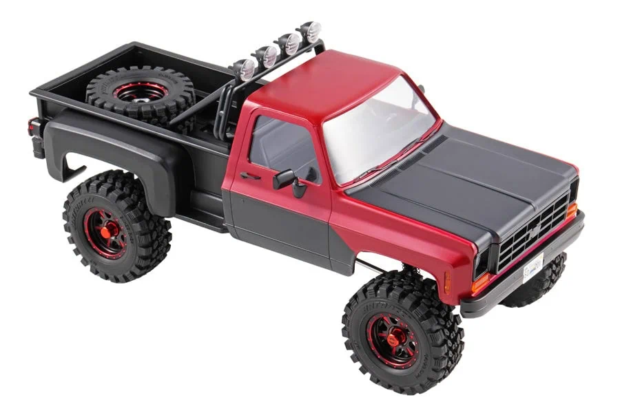 New from Fair RC is their FCX18 K10 Stepside Mod RTR, a unique take on the FMS FCX18 Chevy K10 pickup truck. Featuring a stepside-style rear bed, new tires, wheels, and a unique red and black paint job, this modified R/C truck puts a fresh spin on a rig that's seen plenty of trail time.