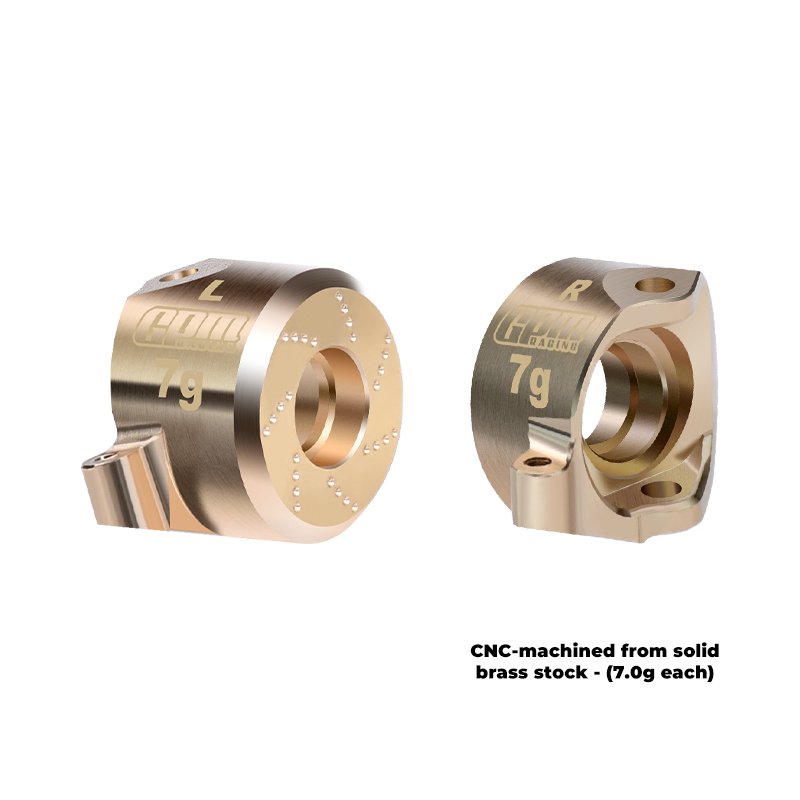 Made of machined brass, each steering knuckle weighs 7g, allowing you to add a total of 14g of low, front-focused weight to your SCX30 with relative ease.