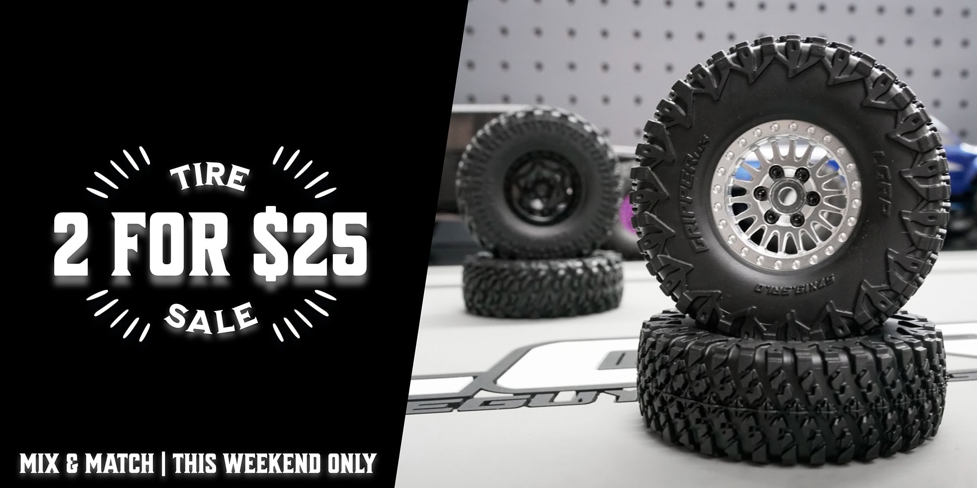 If you need to stock up on tires for upcoming small-scale crawler projects, or you want a few options to choose from for your next R/C adventure, you'll want to check out this weekend's "2 for $25" Tire Sale at Little Guy Racing Parts.