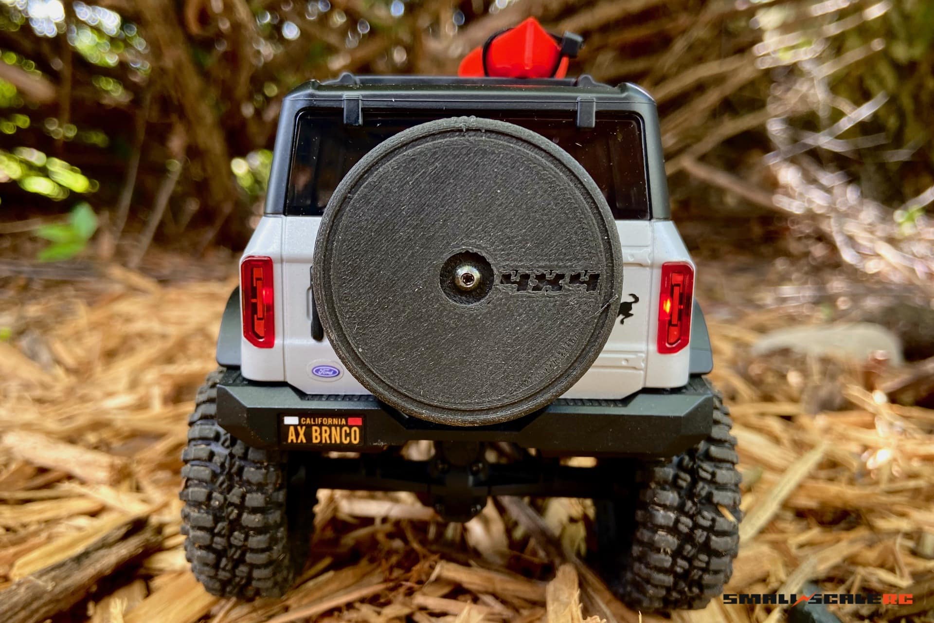 Measuring 45mm wide, this Rear Tire "Cover" scale accessory is 10% smaller than our original design. Still scale in appearance, this scaled-down item lets you see a bit more of your Bronco's backside.