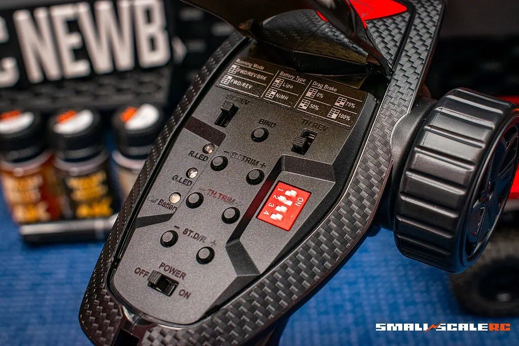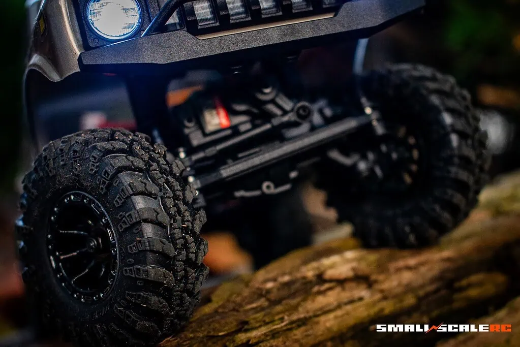 With its smooth performance, especially under low-throttle input, this truck can easily navigate trails and obstacles while also making a fun hiking companion. The drag brake can be adjusted on the fly by flipping dip switches on the radio transmitter, which I appreciate, especially in a small-scale crawler.